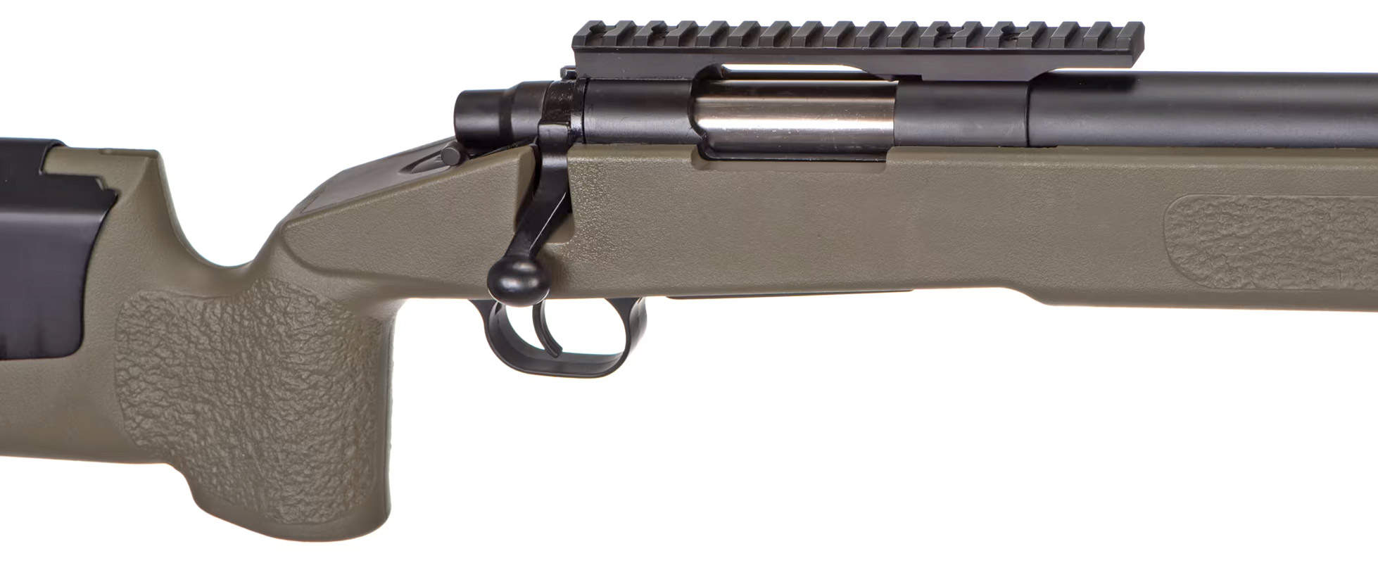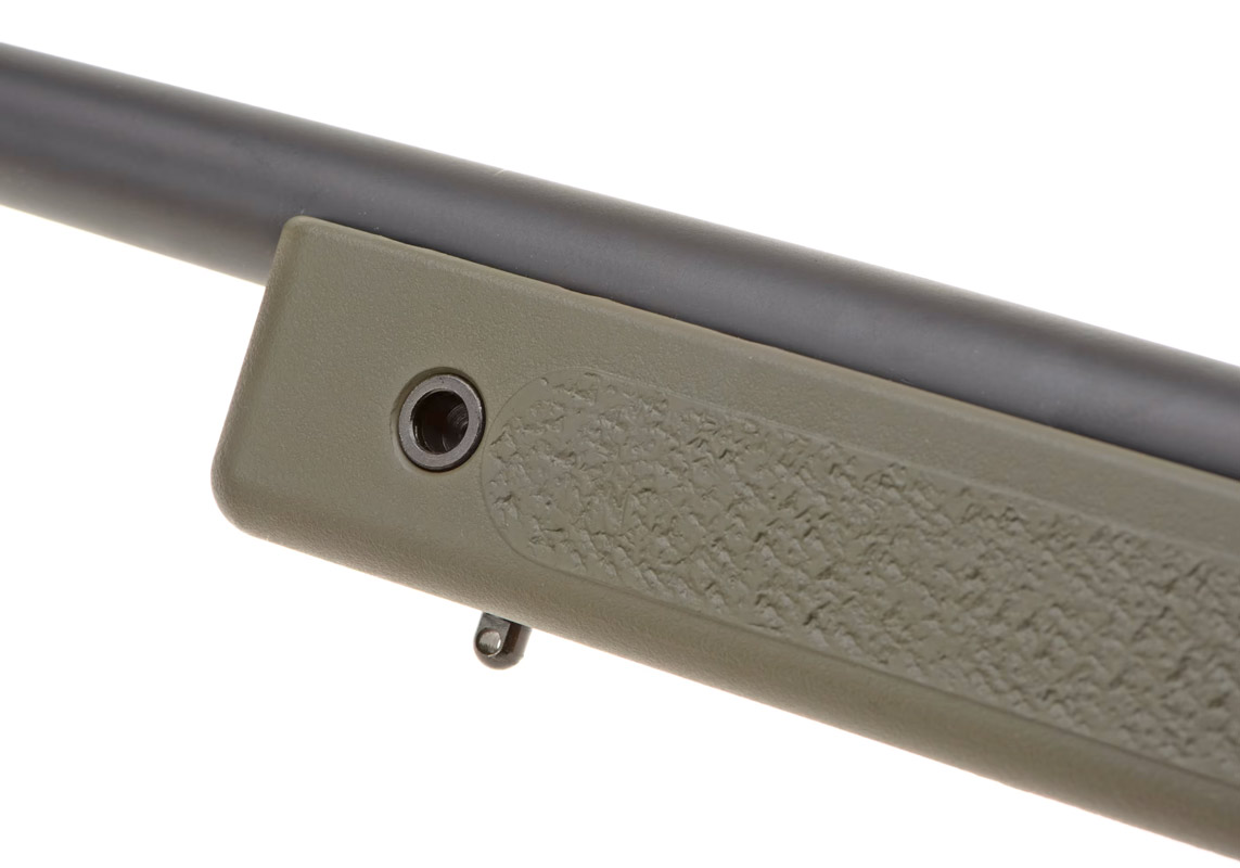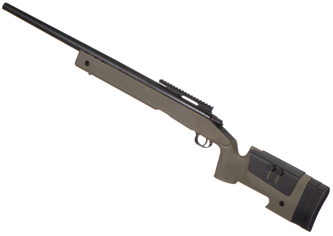 M40A3 high end sniper från Cyma i OD-färg. M700-snipern är byggd på den solida M40A3-plattformen och den är lätt att uppgradera efter behov. Kolven är gjord av robust ABS-fiber med metallpipa och lastbult. Geväret kommer med en 21 mm skena för montering av utrustning, samt en kindstöd på stocken som kan justeras i höjdled. En bra prickskytt som skjuter bra och erbjuder många alternativ för konvertering.