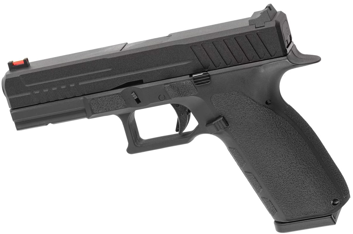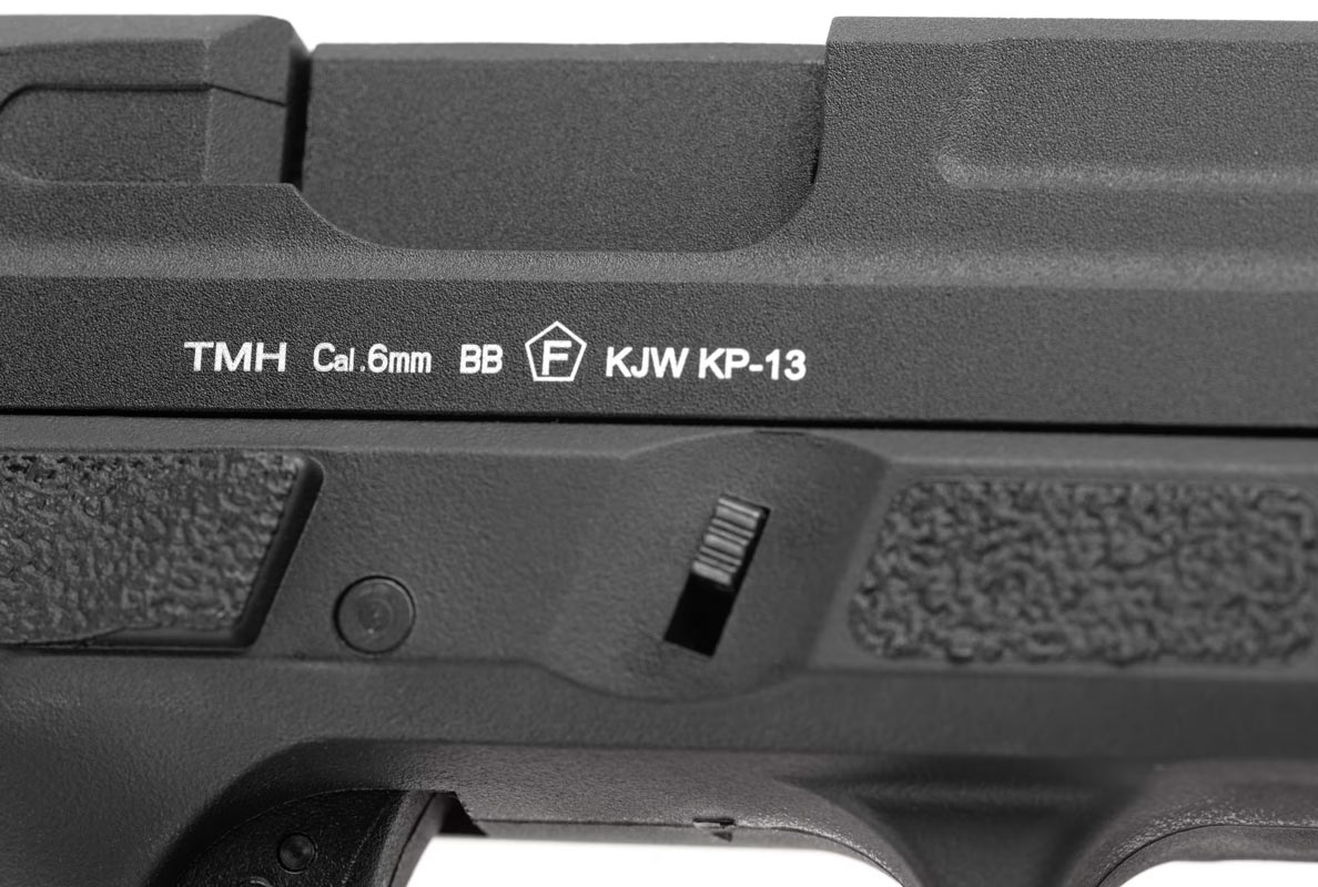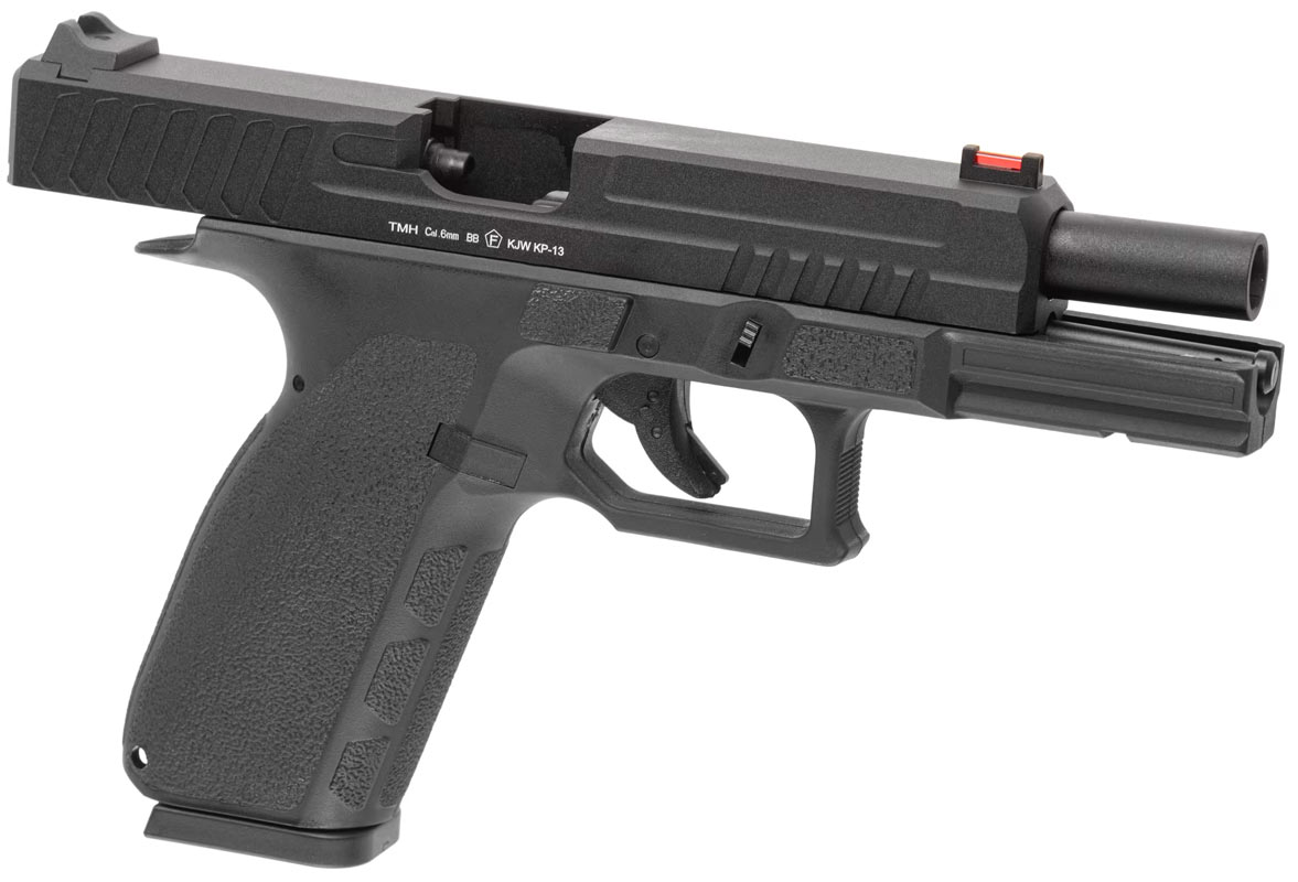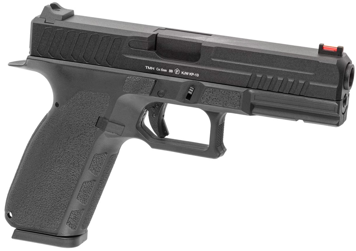 Kj works KP-13 gaspistol som kommer med metall mantel och fiberram. Gaspistolen Kj works KP-13 har ett fiberoptiskt sikte fram som gör det lättare för skytten att "fånga" målet. Pistolen har en inbyggd säkerhet i avtryckaren och kommer med ett kraftfullt Blow Back.