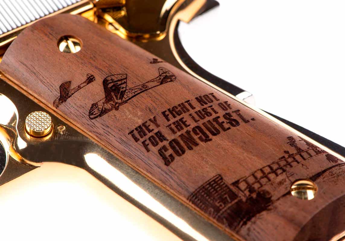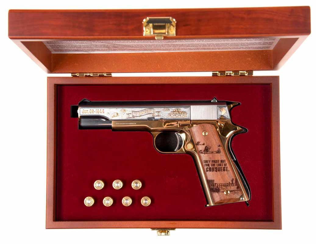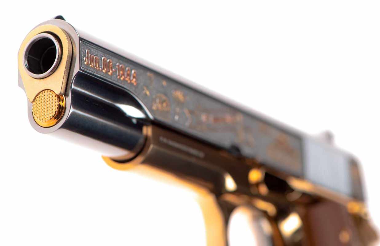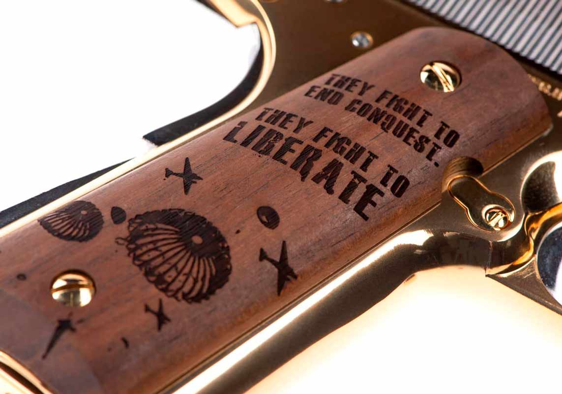 Pistolen för dig som vill ha något helt unikt. GPM1911 D-Day Limited Version är en M1911-modell med stor omsorg om detaljer, och pistolen levereras i en vackert fodrad trälåda med 7 attrapppatroner, samt en liten hyllning till soldaterna som gick i land på D-dagen. Pistolen är tillverkad helt i metall och har så många detaljer att det är nästan omöjligt att beskriva dem alla här. Pistolgreppet är tillverkat av riktigt trä, som är vackert graverat, och om du väljer att skjuta med pistolen kommer du att uppleva bra blowback och en pistol som helt enkelt skjuter bra. Låt bilderna tala för sig själva..