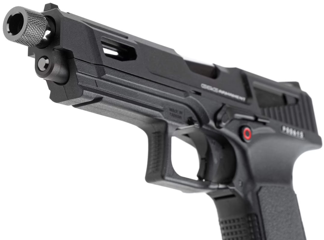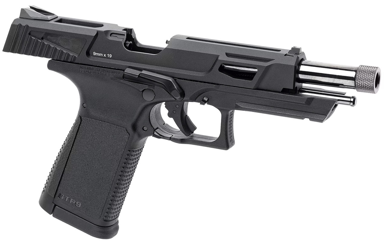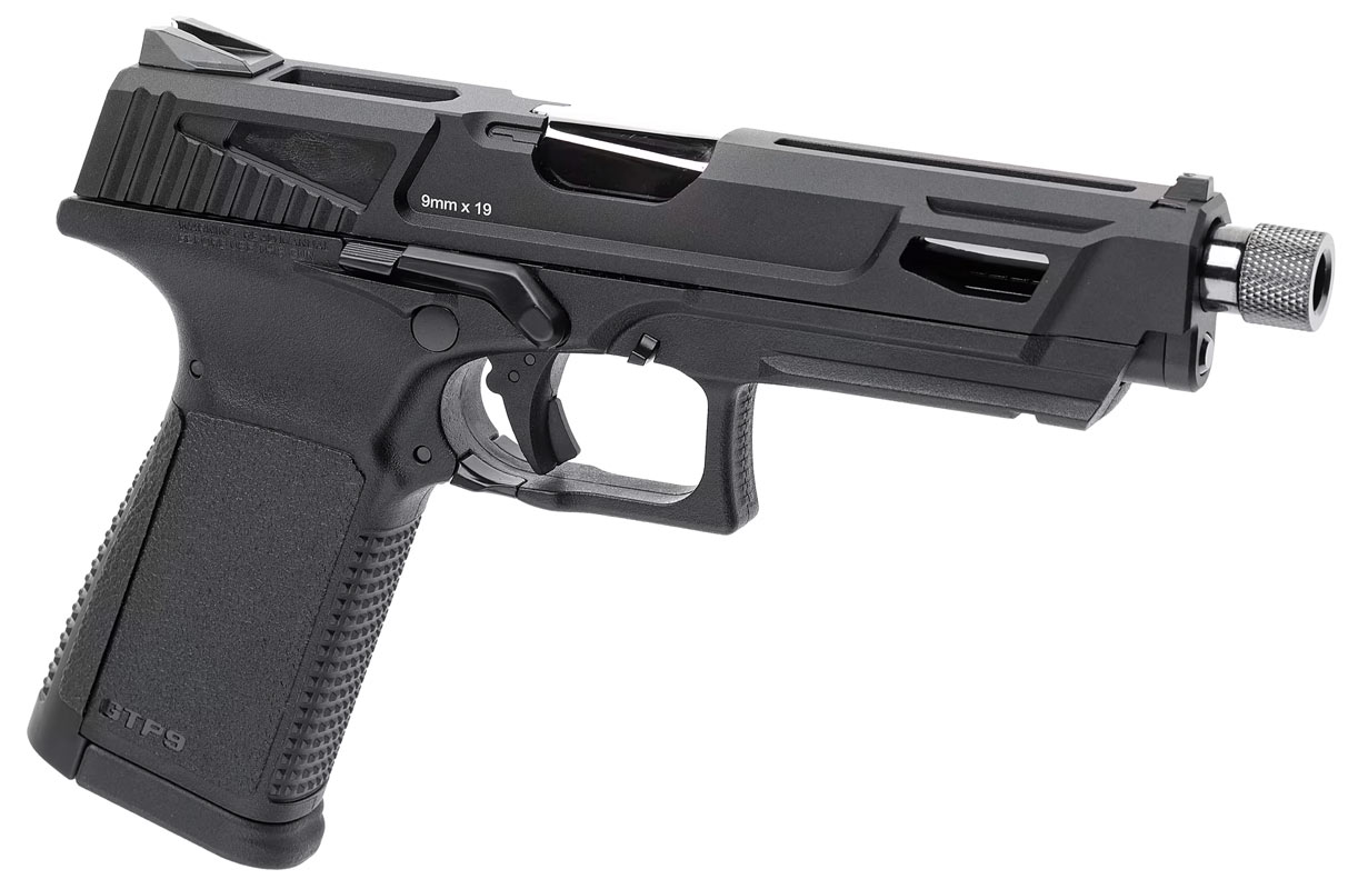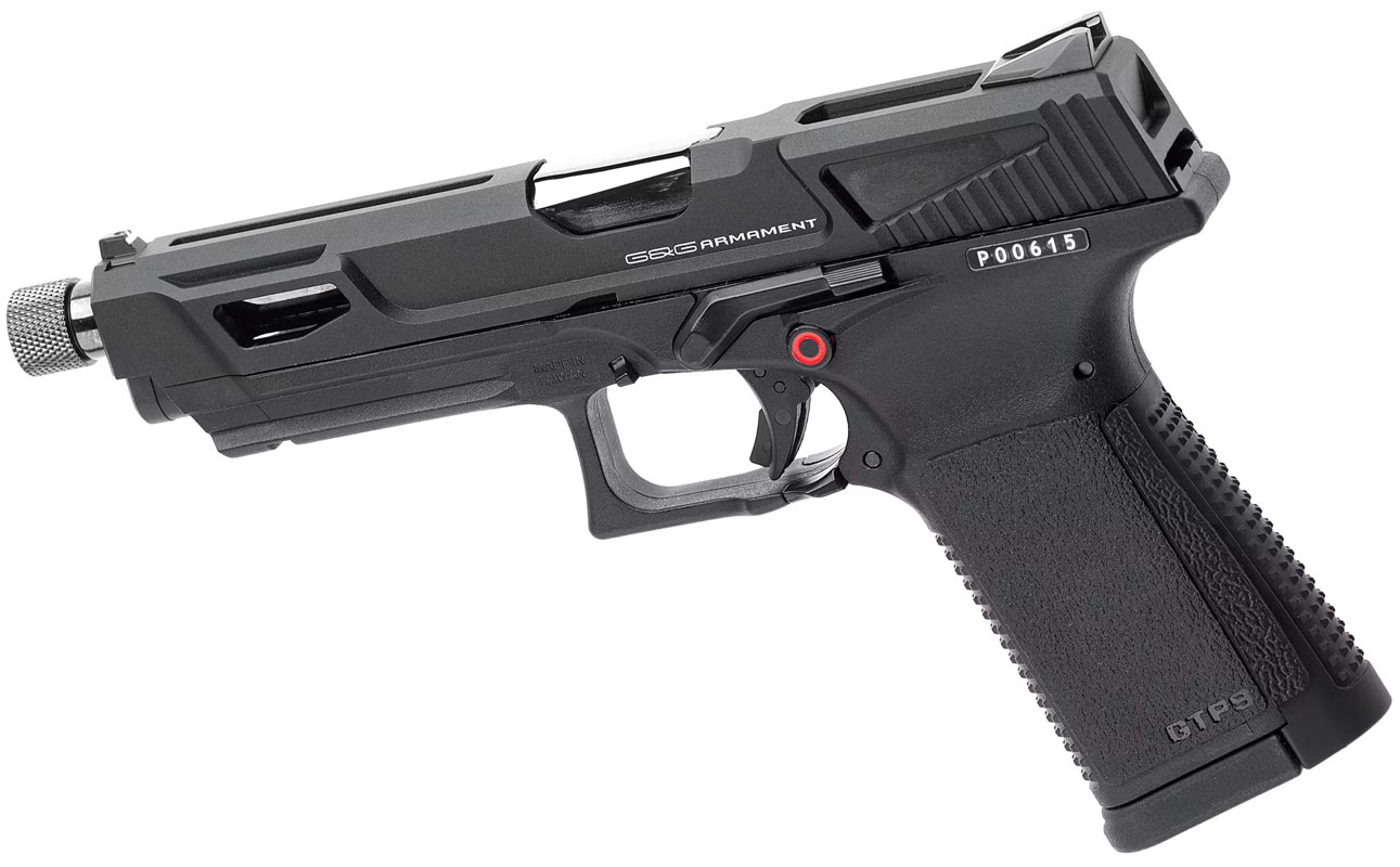 GTB 9 MS-pistolen är en helt unik pistol från G&G som är tillverkad med metall mantel och fiberstomme. GTP9 MS Pistols gaskammare är utrustad med keramiska delar, vilket ger bättre fördelning av gasen så att man inte uppnår riktigt samma kylning som man känner till från gaspistoler, och därmed också en mer stabil kulbana även på de sista kulor . Hop-up-funktionen på pistolen justeras på ett helt nytt och enkelt sätt, så du behöver inte ta bort sliden för att justera. Magasinet är utrustat med ett filter som säkerställer att alla föroreningar sorteras bort. Pistolen levereras i ett vapenfodral så den är enkel att transportera. Pistolen är svart med en kromad yttre pipa, och magasinutlösaren kan användas på båda sidor av pistolen. Pistolen har en inbyggd säkerhetsspärr i avtryckaren för att säkerställa att pistolen inte avfyras oavsiktligt.