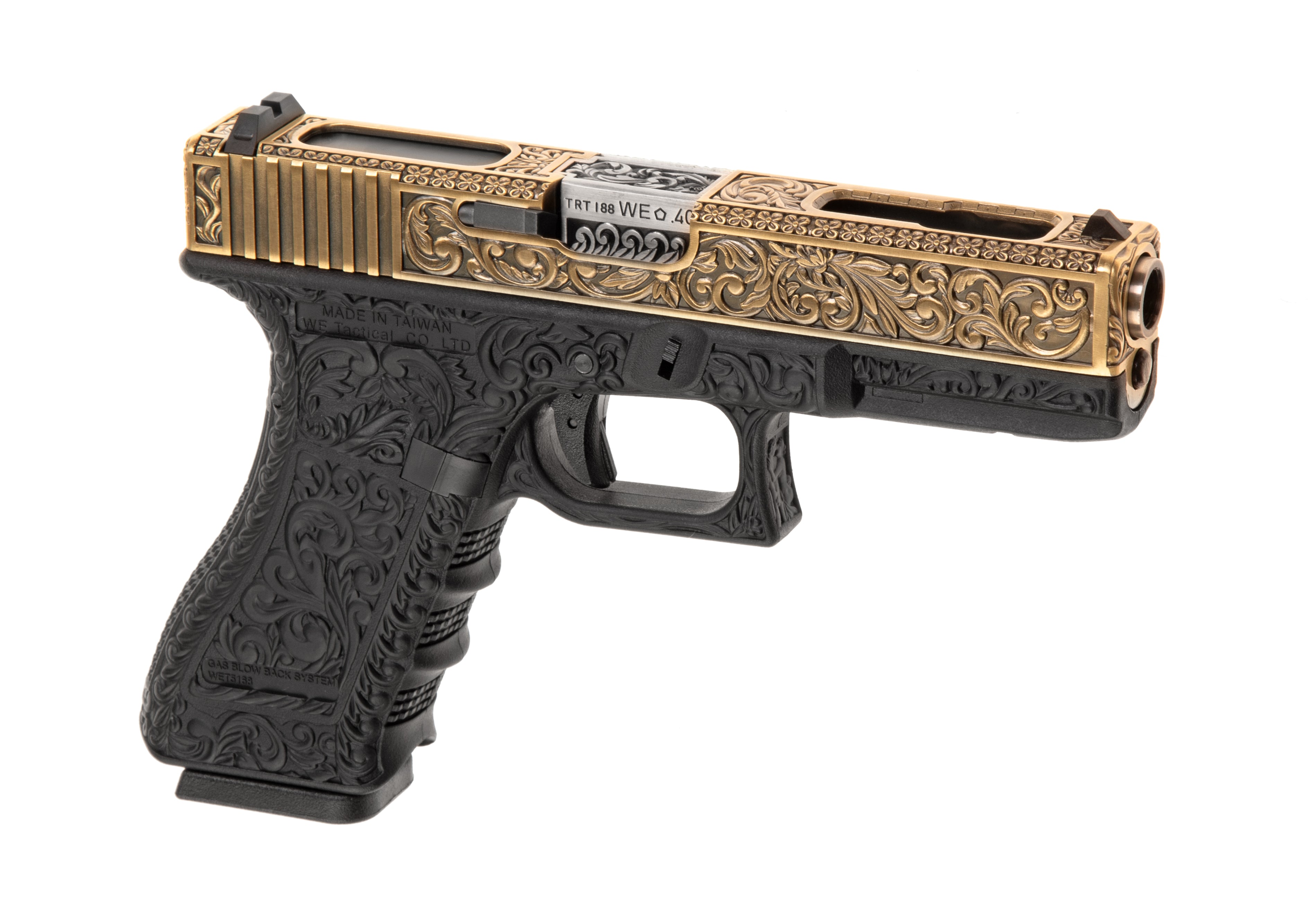 Är du trött på de klassiska G-serie pistoldesignerna? WE17 Etched Metal Version från WE sticker ut med sitt unika och iögonfallande uttryck. Pistolen är 3D-graverad, vilket ger ett exklusivt, konstnärligt utseende samt en yta som förbättrar grepp och vapenhantering.