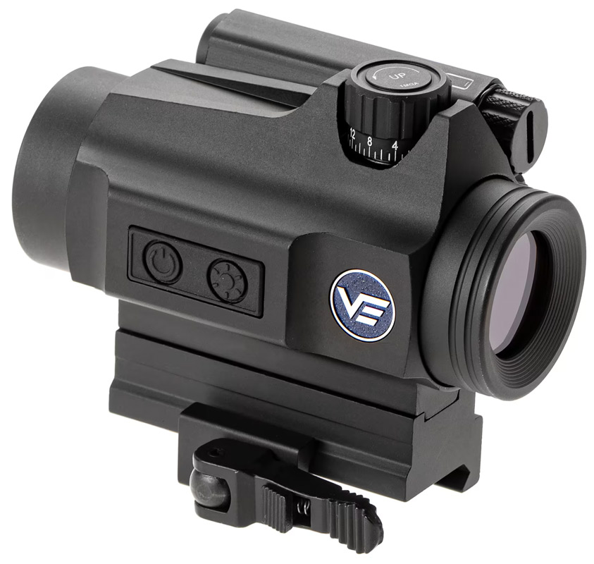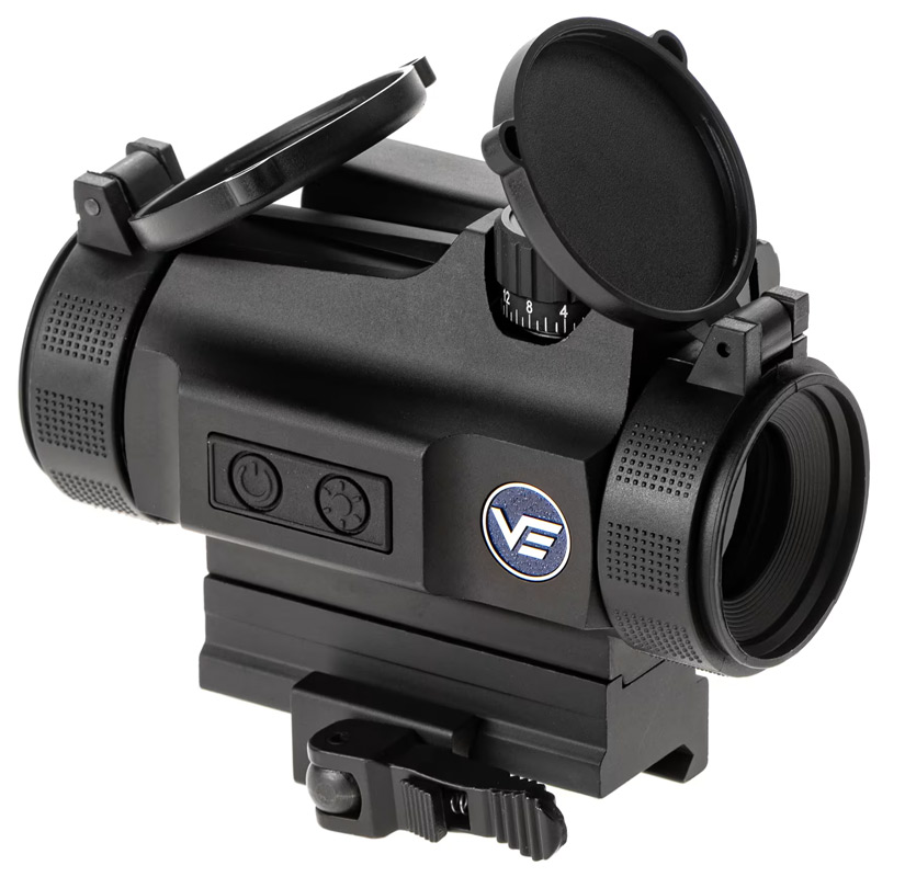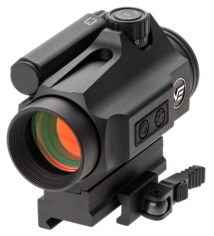 Rödpunktssiktet har ett 30 mm objektiv som ger ett brett synfält och en klar bild. Den belysta DBR-retikeln med röd punkt är tydlig och lätt att se, även när ljusförhållandena ändras. Ljusstyrkan kan justeras direkt på siktet så att det passar omgivningen.