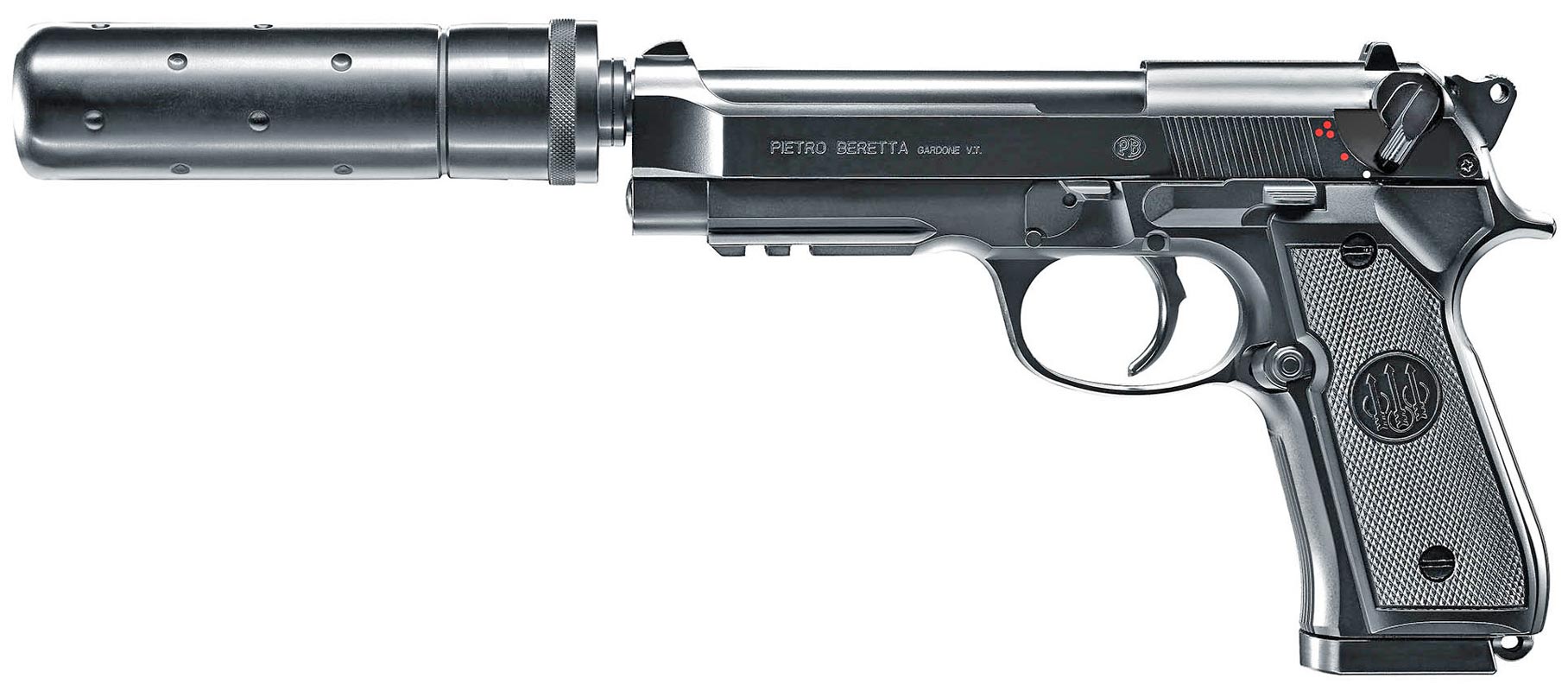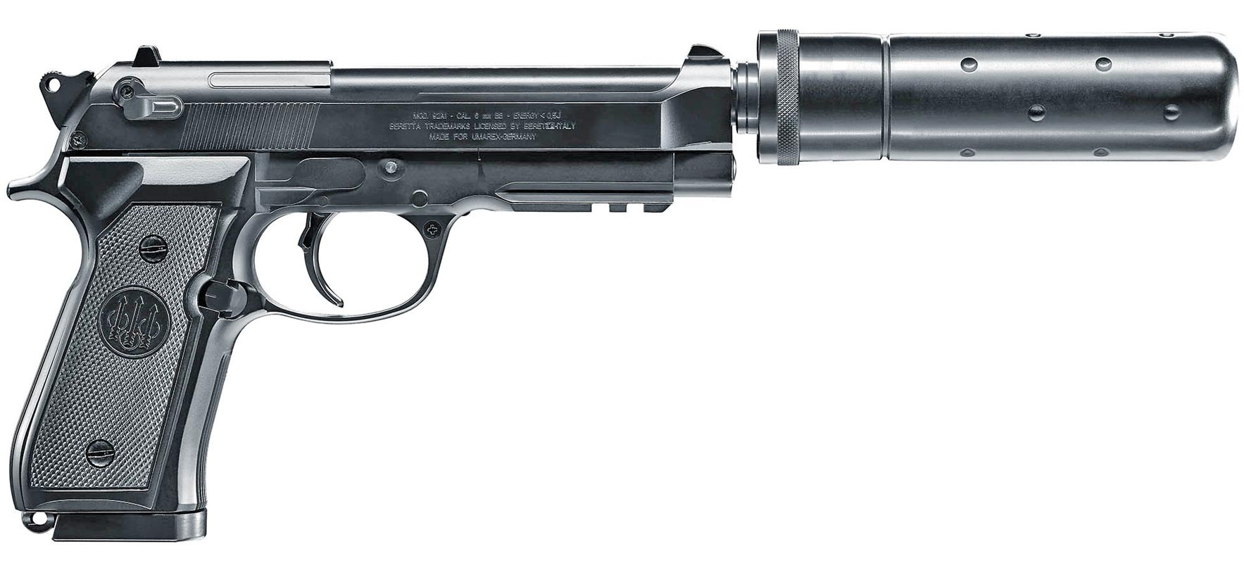 Beretta M92 A1 Tactical Beretta elektrisk pistol som levereras med ljuddämpare och metallsläde. Beretta M92 A1 Tactical elektrisk pistol levereras med förstärkt växel och växellåda. Det laddningsbara batteriet är inbyggt i pistolen för att göra pistolen realistisk i storlek. Pistolen har möjlighet att skjuta hel- eller halvautomatisk. Ljuddämparen kan tas bort om du vill använda pistolen utan. Under loppet monteras en skena för div. utrustning som lampor och annat. Data.: * Skjuter 55 m / s (mätt med 0,20 g kulor) * Magasinkapacitet är 30 kulor. * Längd är 21,9 / 35,5 cm (utan / med ljuddämpare) * Vikten är 665g * Hop up är fixat. * Släden är gjord av metall * Möjlighet för hel- eller halvbil. * Batteri inbyggt i pistolen. * Original Beretta -märkning på sidan. * Färgen är svart. * Tillverkaren är Umarex Paketet innehåller: * Beretta el pistol * Magasin för pistolen * Ljuddämpare för pistolen * Laddare (batteriet är inbyggt) * Manuell över pistolen * Liten påse med kulor. Vi rekommenderar 0,20 g kulor för denna pistol.