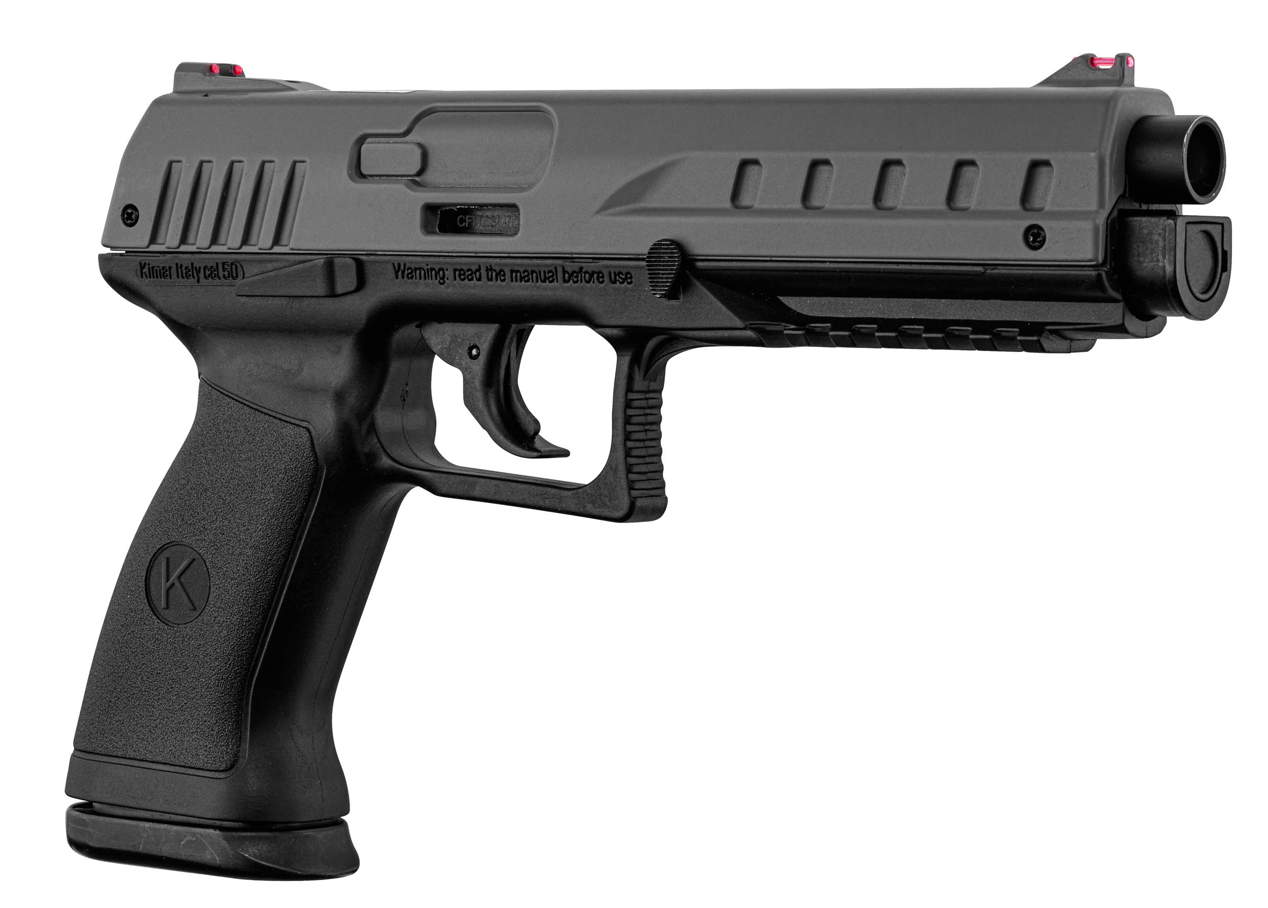 Pistolen är byggd med en polymerram och metallkonstruktion i slutstycke och pipa, vilket ger en balanserad vikt och ett solidt grepp. Det ergonomiska greppet passar både höger- och vänsterhänta skyttar, och den manuella säkringen garanterar extra säkerhet under förvaring och användning. Fiberoptiska sikten och en Picatinny-skena under pipan möjliggör installation av sikten eller taktiska tillbehör.
